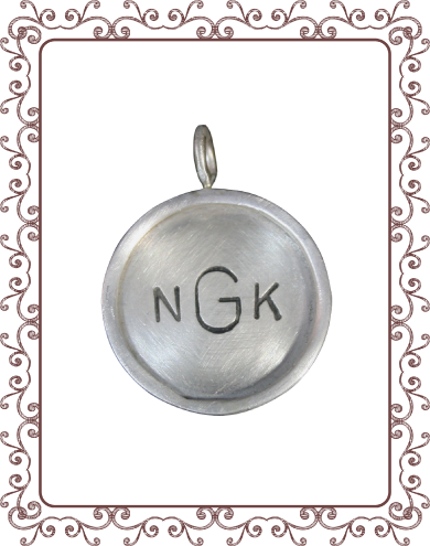 This beautiful charm is wonderful statement piece on its own or as an addition to a Collage Necklace! Forged from sterling silver with a hand formed, silver rim and stamped with your choice of personalization, our 7/8" silver rimmed disc is shown here with a monogram in block font. All of our charms include a basic design in the pricing. You may choose an initial, a monogram, one line of text up to 10-12 characters or a design stamp. For an additional design fee you may add up to 2 lines of text, a name "crossword" design, or have us create a unique collage layout based upon information you provide to us. You may add one of our tiny or small gold additions in your choice of 10k yellow, rose or green gold, and add stamping to the back of the charm as well. Please feel free to contact us regarding any questions you may have about layout design. Visit our design gallery for more creative layout ideas. Personalize it and make it yours!
