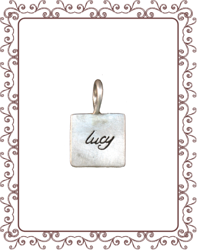 This is sweet, small charm is wonderful on its own or as an addition to a Collage Necklace! Forged from sterling silver and hand stamped with your choice of personalization, the 1/2" simple square is shown here with our lowercase signature formal script. Each one of our charms includes a basic design in the cost. You may choose from an initial, a single line of text up to 6-7 tiny or small letters or numbers, or a design stamp. For an additional design fee, you may add up to two additional lines of text, or one of our tiny or small gold additions in your choice of 10k yellow, rose or green gold. You may add stamping to the back of your charm, as well. Visit our design gallery for more creative layout ideas. Personalize it and make it yours!