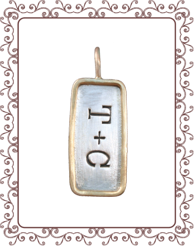 This medium tag is the perfect way to start off or add to a Christy Branham Collage Necklace! Forged from sterling silver, solid gold and hand stamped with your choice of personalization, this small silver tag measures 1/2"x1", is shown here with a 10k yellow gold rim and stamped with our medium vintage type font. Our gold rims are available in 10K rose and 10k green gold, as well. All of our charms include a basic design as a part of the cost. You may choose an initial, a single line of text up to 12 tiny or small letters or numbers or a design stamp. For an additional design fee you may also add additional lines of text, one of our tiny or small gold additions in your choice of 10k yellow, rose or green gold, or a unique collage design created from information you provide to us. Personalize it and make it yours!